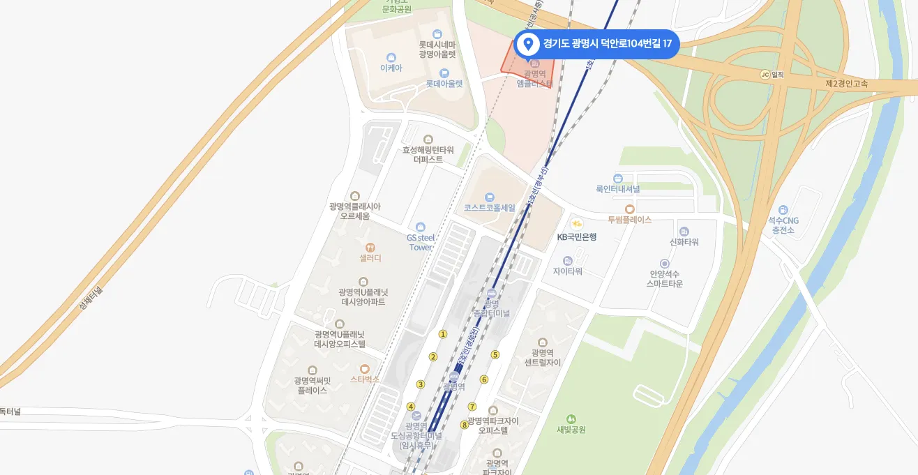 근무지역 : 경기도 광명시 덕안로 104번길 17, 광명역m클러스터